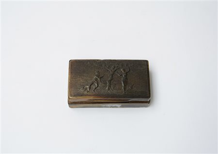 Tabacchiera in corno con coperchio decorato con Adamo ed Eva, secolo XIX...