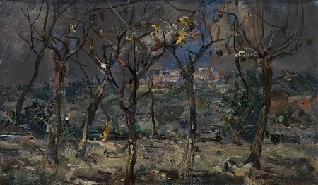 Guido Casciaro Napoli 1900 1963 "Paesaggio con alberi in primo piano" olio su...