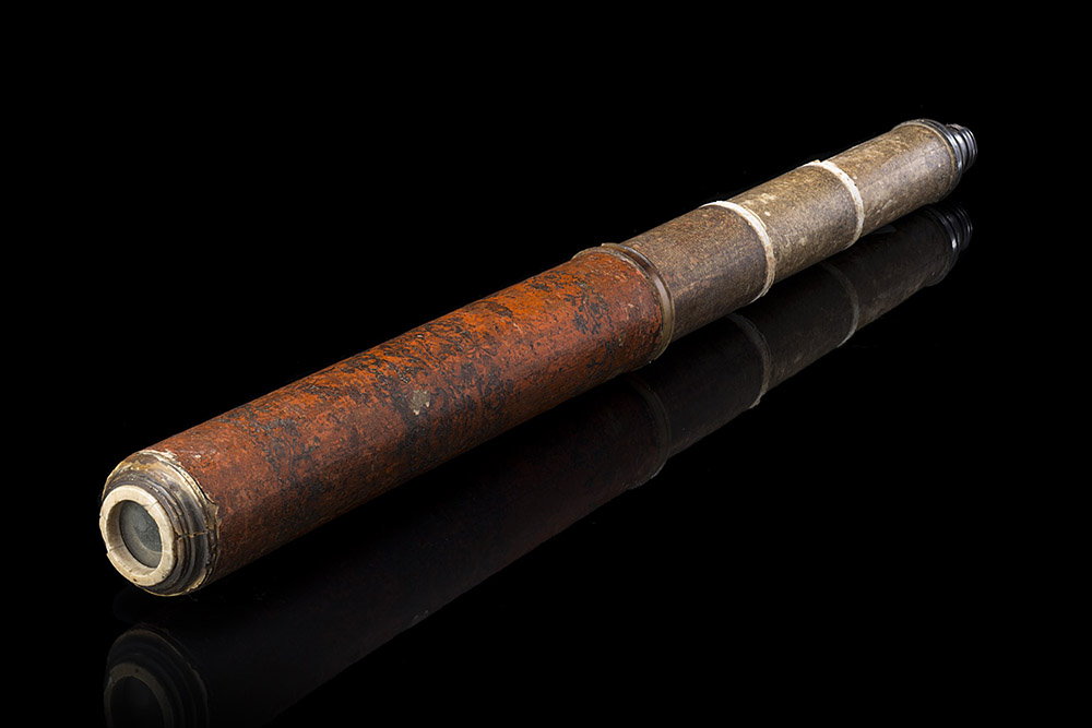 Leonardo Semitecolo, cannocchiale in carta pressata e marmorizzata decorata a...