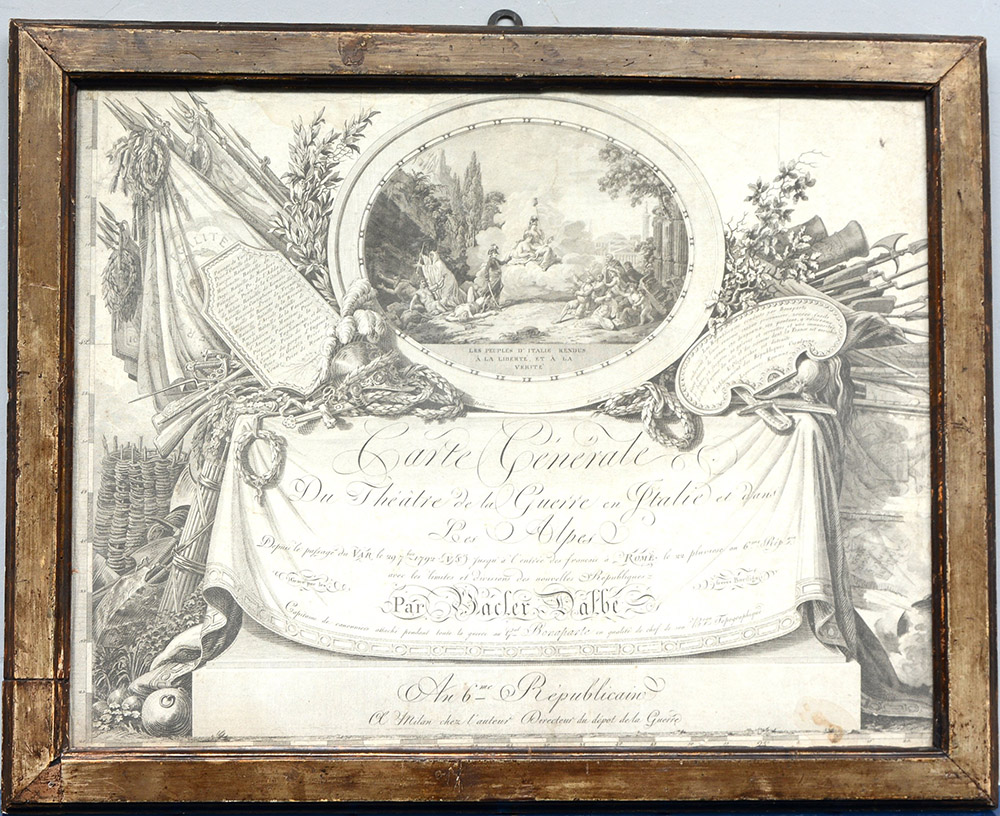 Frontespizio de "Carte Generale du Theatre de la Guerre ..." incisione della fine del secolo XVIII ( cm 50x65) in cornice (difetti)