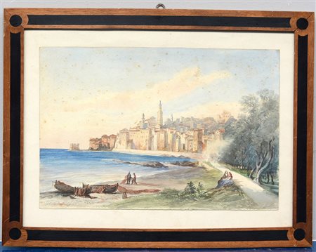 Scuola del secolo XIX "Mentone" 1835 acquarello su carta (cm 25x37) locato e...
