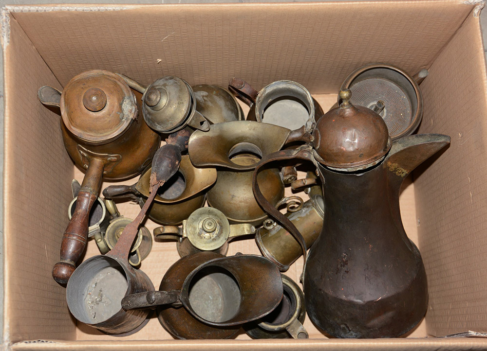 Cartone contenente numerose cuccume e versatoi vari (difetti)