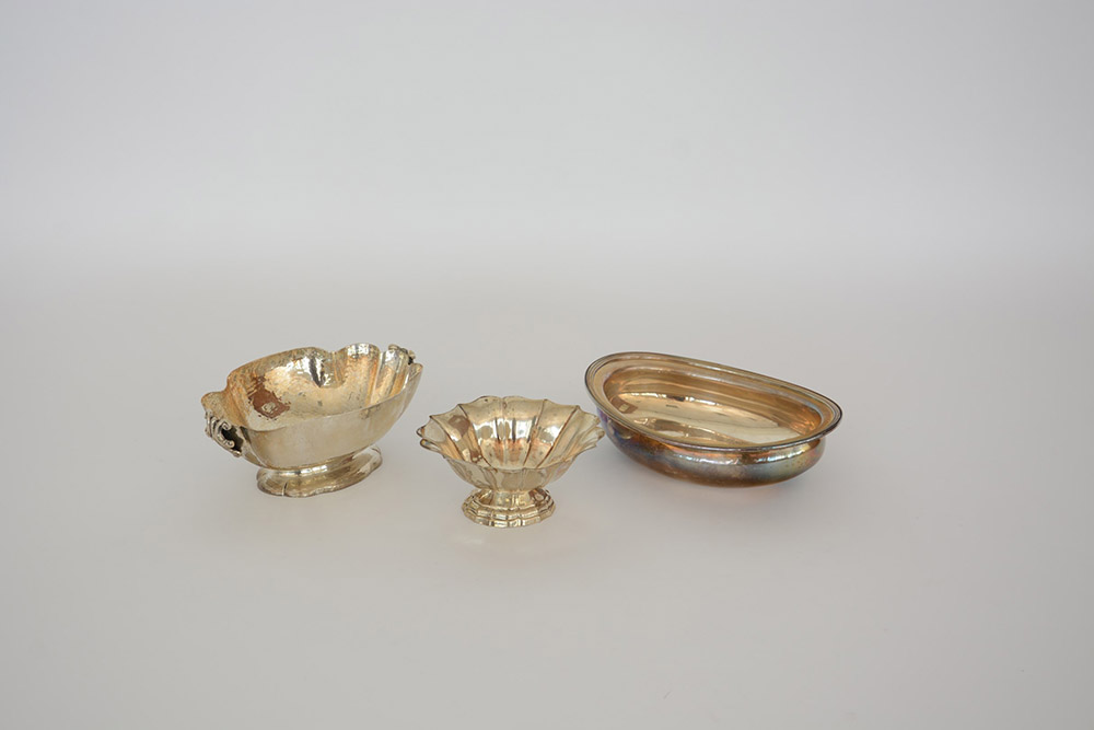 Lotto composto da tre ciotole in argento. Italia, sec. XX (d. cm max 18) (gr 520 ca.) (lievi difetti)