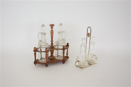 Lotto composto da due cruet in legno e metallo cromato di epoche differenti...