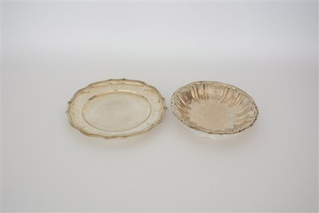 Lotto composto da un piatto e un'alzata in argento. Italia, sec. XX (d. max cm 28) (gr 1030 ca.) (lievi difetti)