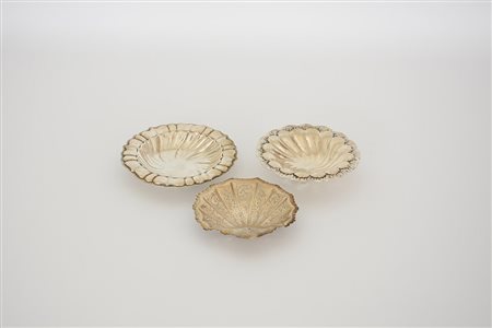 Lotto in argento composto da tre ciotole. Italia, sec. XX (d. max cm 16) (gr 350 ca.) (lievi difetti)