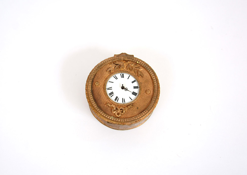 Scatola con orologio (d. cm 10) (difetti e mancanze)