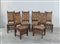 Gruppo di sei sedie intagliate e traforate a motivi stilizzati e valve di...