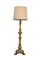 Piantana in legno dorato e intagliato a foglie d'acanto e bugnature. Base terminante a tre piedi ferini (h. cm 150) (difetti)