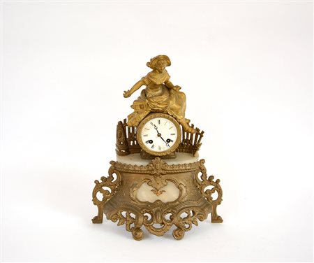ANONIMO, FRANCIA Pendola in antimonio e alabastro Epoca seconda metà sec. XIX...