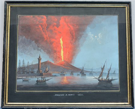 Anonimo napoletano, "Eruzione a Napoli 1812", gouache (cm 64x80) titolata al centro, in cornice (difetti)