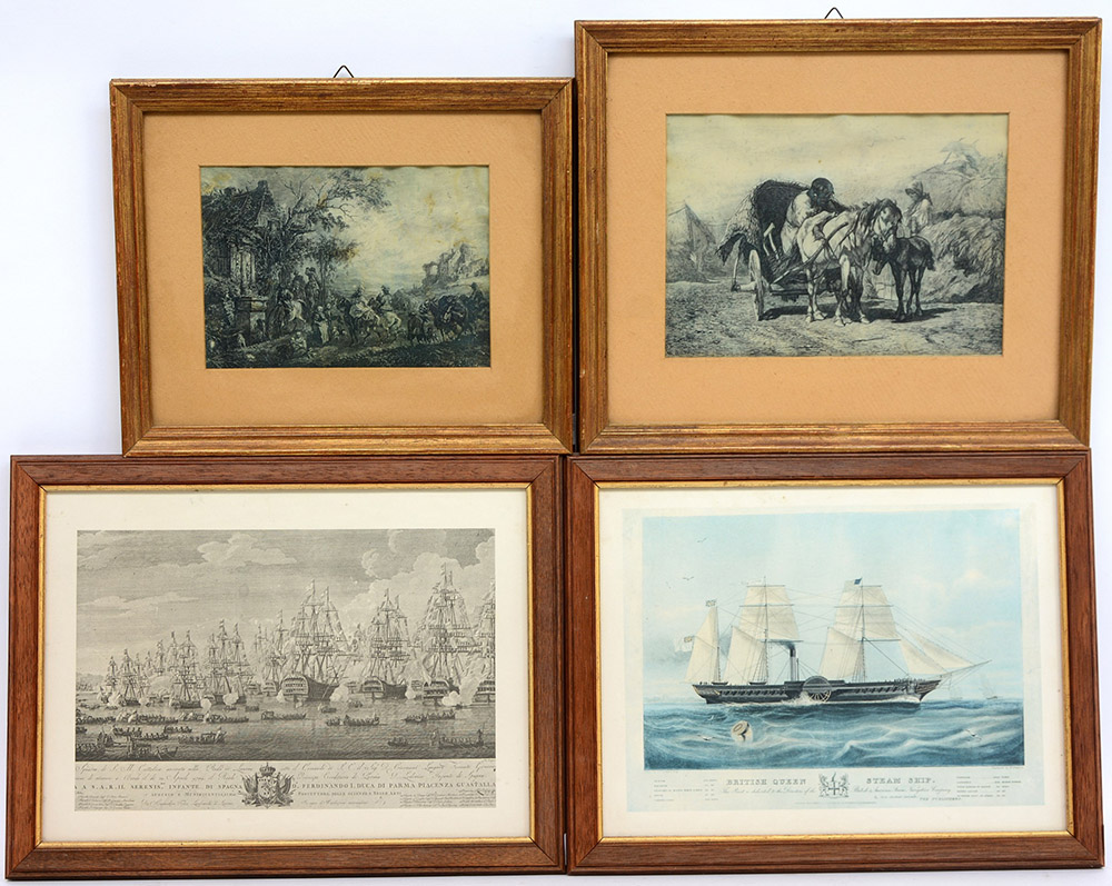 Lotto composto da quattro incisioni diverse in cornici (difetti)