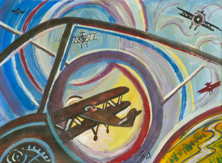 Anonimo Aerei futuristi Tecnica mista su carta, cm. 17x23 Siglato "G.D." in basso a destra.