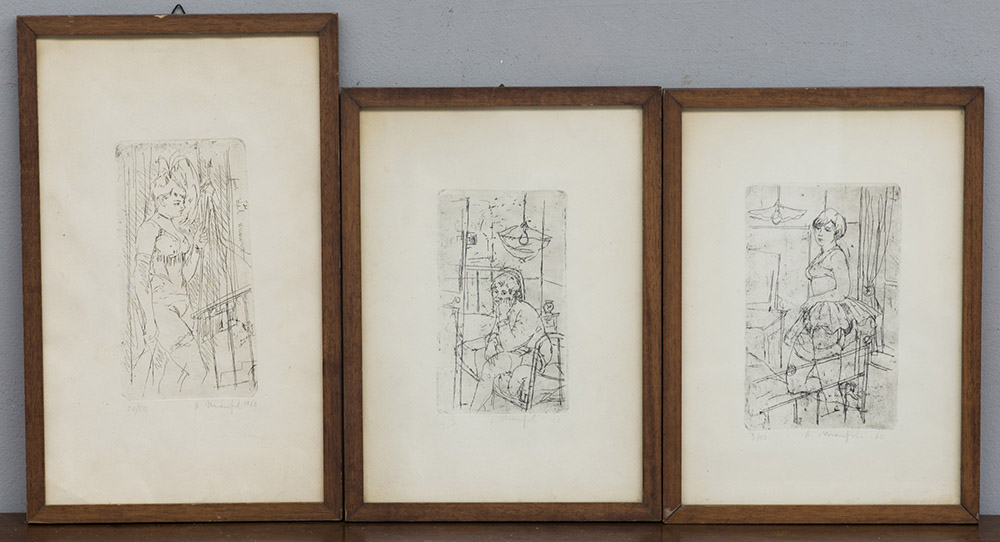 Manfredi Alberto Reggio Emilia 1930 2001 Lotto di tre piccole acquaforti raffiguranti figure femminili, numerate, firmate e datate 1960 in basso a lapis, in cornici (difetti)