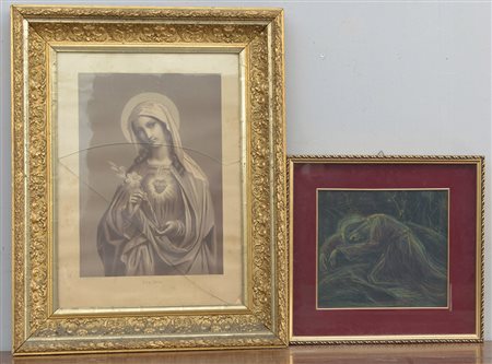 Lotto composto da un'incisione raffigurante la Madonna e una tecnica mista...