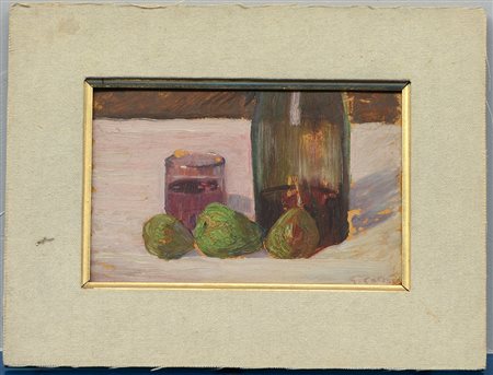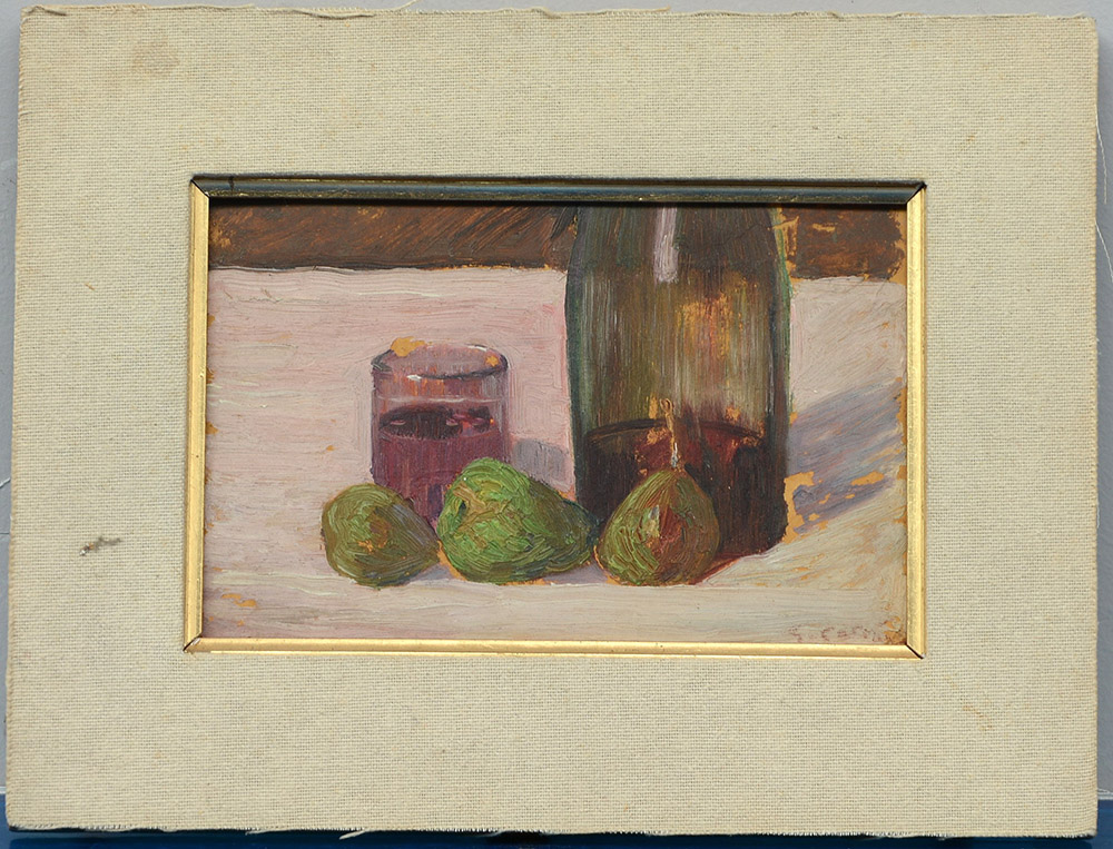 G. Cerrina "Natura morta" olio su cartone (cm 12x18) firmato in basso a destra e iscritto al retro. In cornice