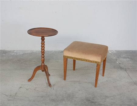 Lotto composto da uno sgabello e un tavolino da salotto con gamba a...