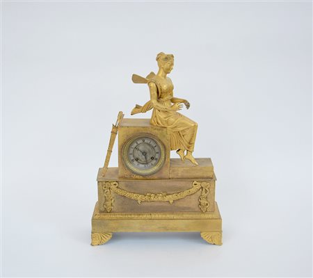 ANONIMO, FRANCIA Pendola in bronzo dorato sormontata da figura allegorica...