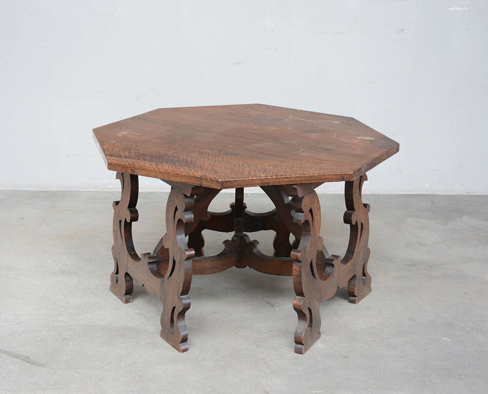 Tavolo da salotto di forma ottagonale con gambe e traverse a lira (cm 100x60x100) (difetti)