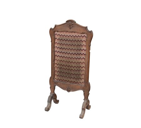 Parascintille in noce di forma sagomata con cimasa e fascia intagliate a motivi vegetali. Piedi mossi scolpiti all'attacco a foglie d'acanto (cm 126x61) Sec. XIX