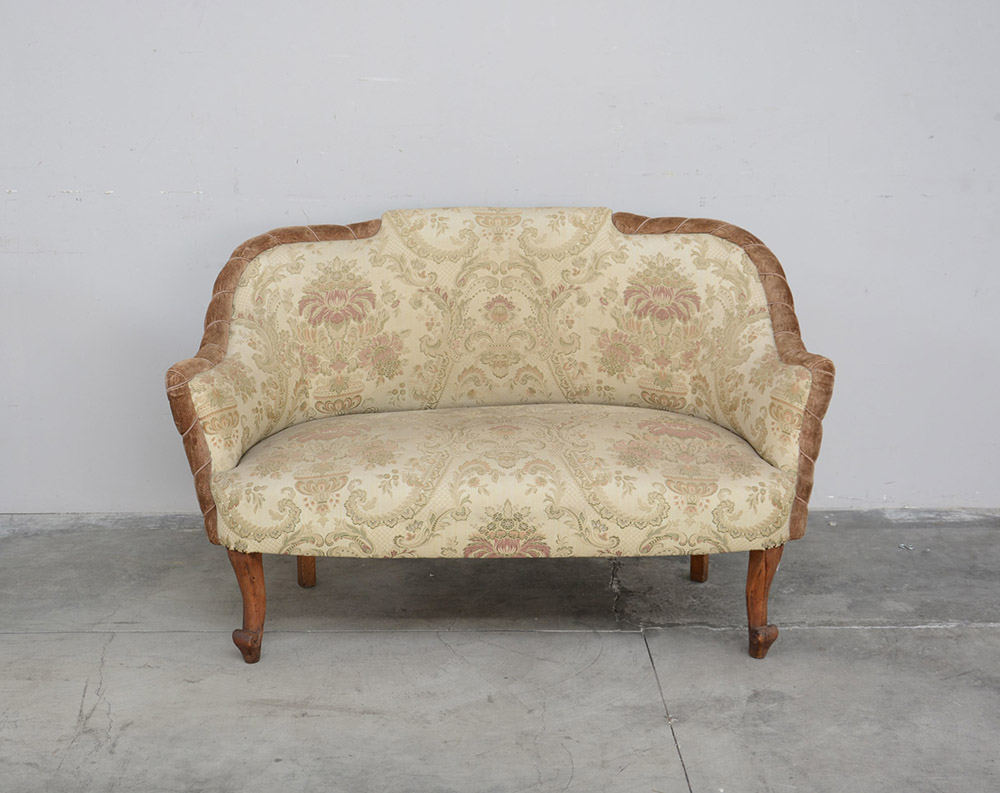 Divano con schienale sagomato e gambe anteriori mosse. Sec. XIX