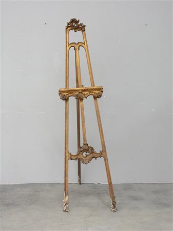 Cavalletto in legno intagliato e dorato a motivi vegetali (h. cm 180)...