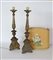 Coppia di portacandele rivestite in rame dorato e sbalzato a foglie. Sec....