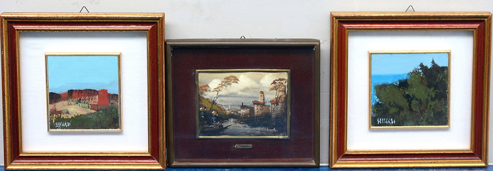 Lotto composto un piccolo dipinto firmato Cargnel e due dipinti firmati Saccardi, in cornici (lievi difetti)