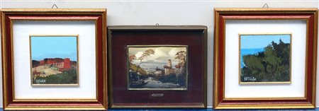 Lotto composto un piccolo dipinto firmato Cargnel e due dipinti firmati...