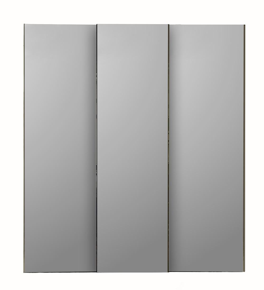Grande armadio guardaroba in legno laccato bianco a tre ante a specchio scorrevoli (cm 292x280x62) (difetti