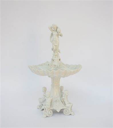 Centrotavola in ceramica decorato a figure e putti in rilievo (h. cm 48)...