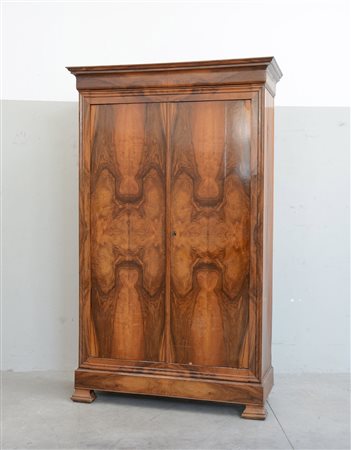 Armadio a due battenti lastronato in noce, secolo XIX (cm 130x212x53) (difetti)