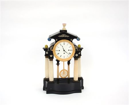 ANONIMO, VIENNA Pendola da tavolo in legno ebanizzato e alabastro Epoca prima metà sec. XIX Movimento con carica giornaliera, suoneria ore e quarti su gong, scappamento ad ancora, sospensione a filo Quadrante in smalto bianco, cifre romame (h. cm 47) (difetti)