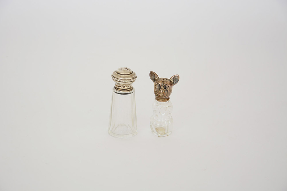 Due saliere in vetro con tappi in argento (h. max cm 9)