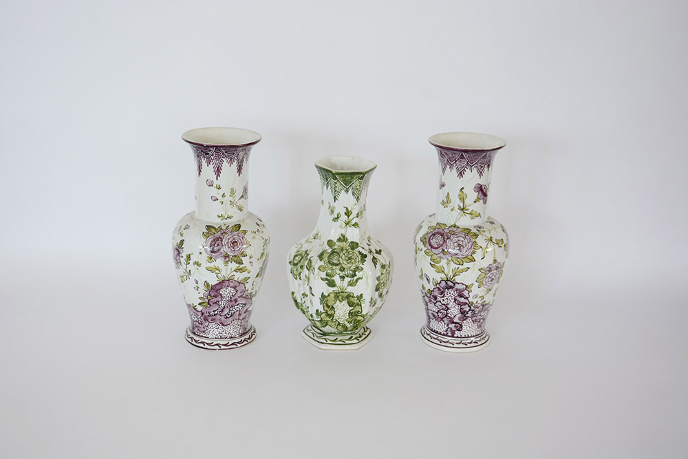 Manifatture diverse. Lotto composto da tre vasi in ceramica decorati a fiori
