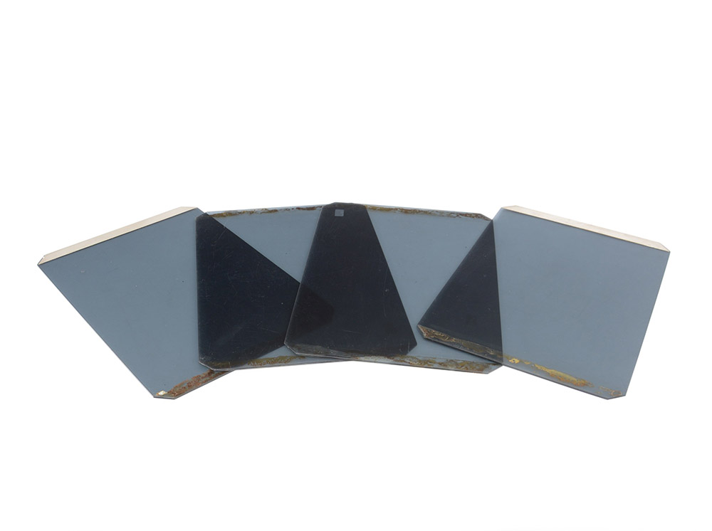 Quattro tovagliette in plexiglass e metallo. Italia, anni 70 (cm 40x0,4x28) (difetti e mancanze)