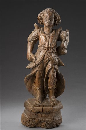 Scuola del sec. XVII "Figura stante" scultura in legno intagliato (h cm 51)...