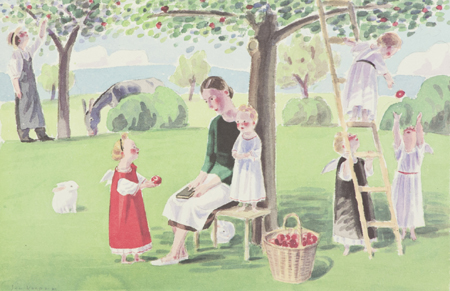 Lodola Marco, Knap Jean Lotto unico di due Opere - "Lodola Marco", Vespa, Litografia su carta, cm. 34x48, es. 29/70. Firma in basso a destra, tiratura in basso a sinistra; - "Knap Jean", La raccolta delle mele, Litografia su carta, cm. 29x44, es. P.A. Firmato in basso a sinistra.