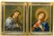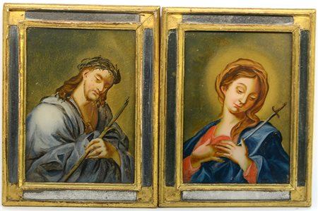 Arte popolare del secolo XIX "Cristo" e "Madonna" coppia di verre-peint (cm 17,5x12,5) in cornici dell'epoca con nserti a specchi (difetti)