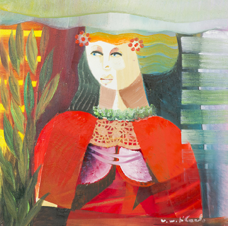 Vittorio Maria Di Carlo San Marco in Lamis (Fg) 1939 Una figura, 2008 Olio e collage su tela, cm. 50x50 Firmato in basso a destra. Sul verso: firma e cenni di provenienza. Autentica dell'Artista su foto.