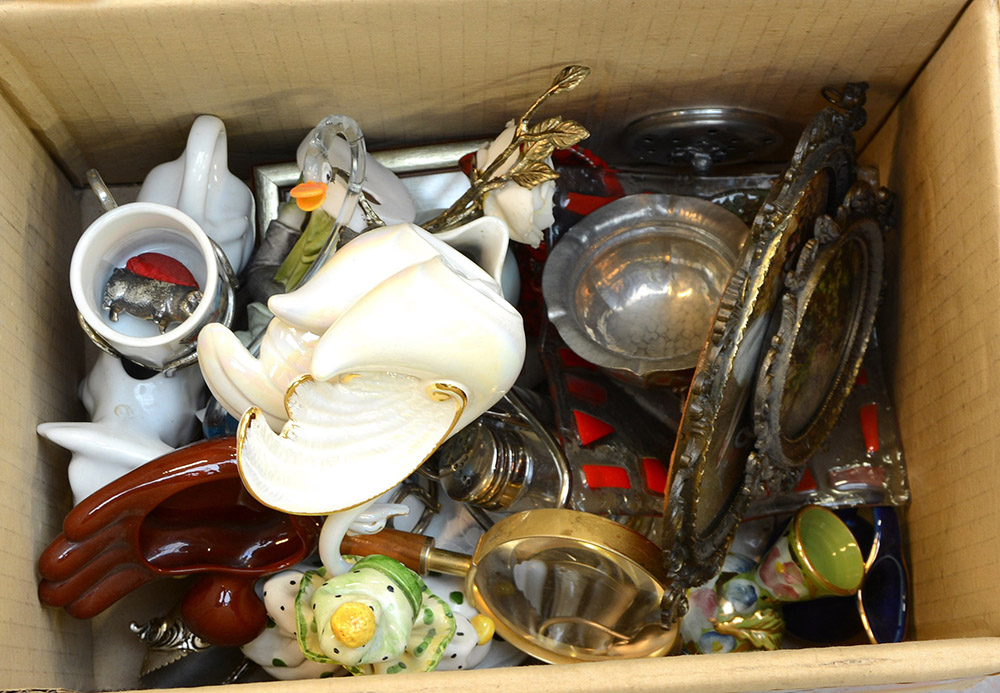 Cartone contenente numerosi oggetti di fatture e materiali diversi (difetti)