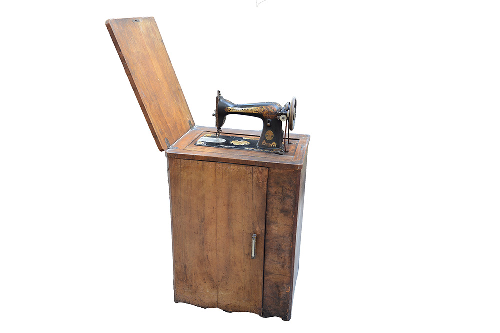 Macchina da cucire marca "Singer" contenuta in mobiletto in legno