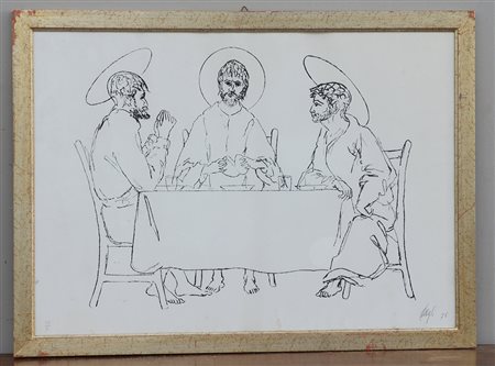 Corrado Cagli Ancona 1910 Roma 1976 "Gesù spezza il pane fra due santi", litografia (cm 50x70) firmato e datato 1976 in basso a destra, in cornice (difetti)