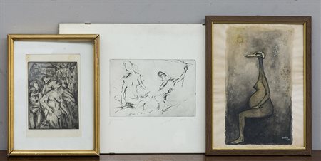 Lotto composto da due acqueforti ed una tecnica mista su carta, di autori e...