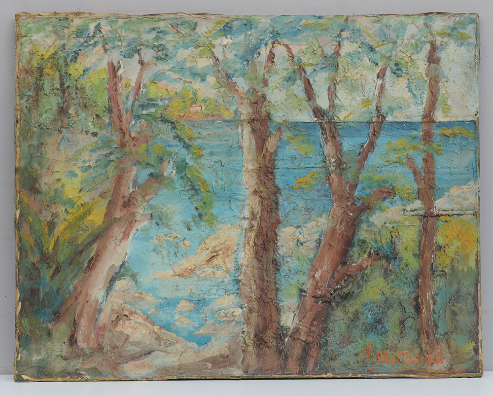 Mattessich G. "Paesaggio" olio su tela (cm 80x100) firmato in basso a destra (difetti)