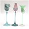 Manifatture diverse Sec. XX, lotto di tre bicchieri in vetro azzurrino, verde...