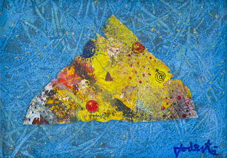 Massimo Podestà Sarzana (Sp) 1949 Monolite cosmico Tecnica mista su cartoncino, cm. 7,5x12,5, applicato su tela Firmato in basso a destra e al centro. Sul verso: scritto di Autenticità dell'Artista.