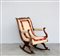 Poltrona a dondolo in mogano, filettata e intarsiata in ottone a motivi...