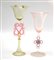 Manifattura di Murano Sec. XX, due bicchieri in vetro soffiato rosa e verde...