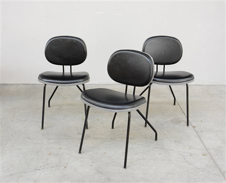 MIM Roma, lotto composto da tre sedie in tubolare metallico verniciato nero e...